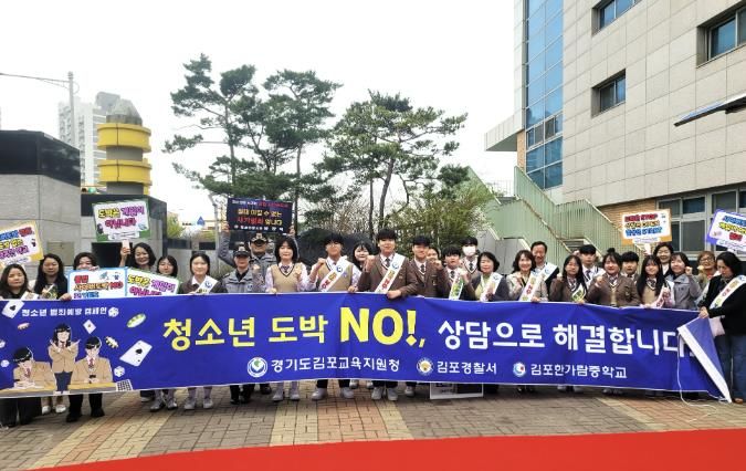 이날 김포교육지원청, 김포경찰서, 김포한가람중 학생자치회 및 학부모회 임원과 교직원 등 30여 명이 뜻을 모아, 학생들이 SNS를 통해 도박에 쉽게 노출되는 문제의 심각성을 알리고 학생 도박 중독을 예방하기 위한 캠페인을 진행했다.