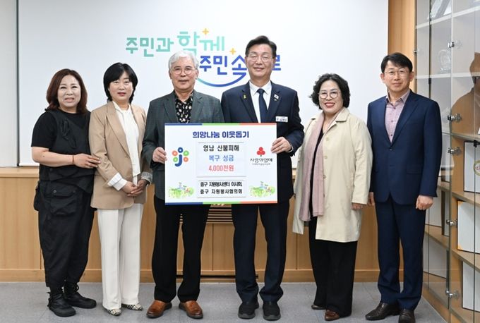 김제선 중구청장은 “어려운 시기에 따뜻한 마음을 모아주신 모든 분들께 깊이 감사드리며, 구에서도 피해 주민들이 하루빨리 일상으로 복귀할 수 있도록 지속적으로 관심을 갖고 지원하겠다.”라고 말했다.