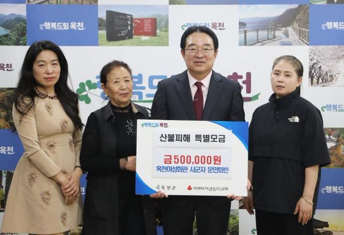 황규철 옥천군수는 “회원들이 수업을 통해 단지 그림뿐 아니라 따뜻한 마음을 나누는 활동도 함께 해주어 감사하다”며 “이번 기탁이 산불피해를 입은 이웃들에게 조금이나마 힘이 되길 바란다”고 덧붙였다.