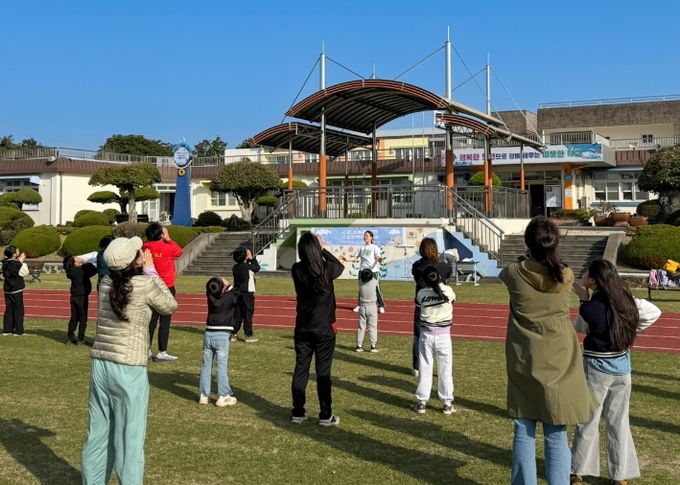 이번 프로그램은 제주의 맑은 공기와 아침 바람을 느끼며 전문 강사의 지도 아래 척추 정렬과 자세 교정 운동을 진행, 학생들의 체력 증진과 건강한 생활 습관 형성을 목표로 한다.