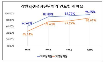 (아름다운교육신문) 강원특별자치도교육청은 4월 21일 2025학년도 강원학생성장진단평가에 대한 학교 신청 결과를 발표했다.
