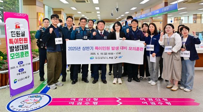 (아름다운교육신문) 부산 서구는 지난 4월 18일 특이 민원 발생 상황에 대비한 모의훈련을 실시했다. 이번 훈련은 민원 응대 중 발생할 수 있는 폭언·폭행 등의 위협으로부터 직원을 보호하고, 실제 상황에서의 대응 역량을 강화하기 위해 마련됐다.
