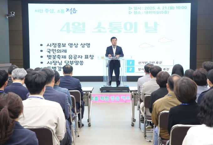 시는 지난 21일 시청 5층 대회의실에서 직원 200여 명이 참석한 가운데 4월 소통의 날 행사를 열고 시정 운영 방향과 현안 대응을 공유하는 뜻깊은 자리를 마련했다.