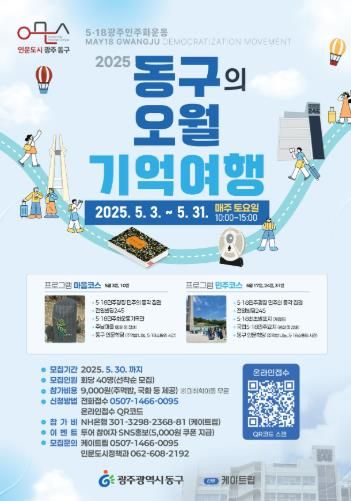 (아름다운교육신문) 광주 동구는 5·18 민주화운동 제45주년을 맞아 ‘동구의 오월 기억 여행’ 투어 프로그램을 5월 한 달간 운영한다고 밝혔다.