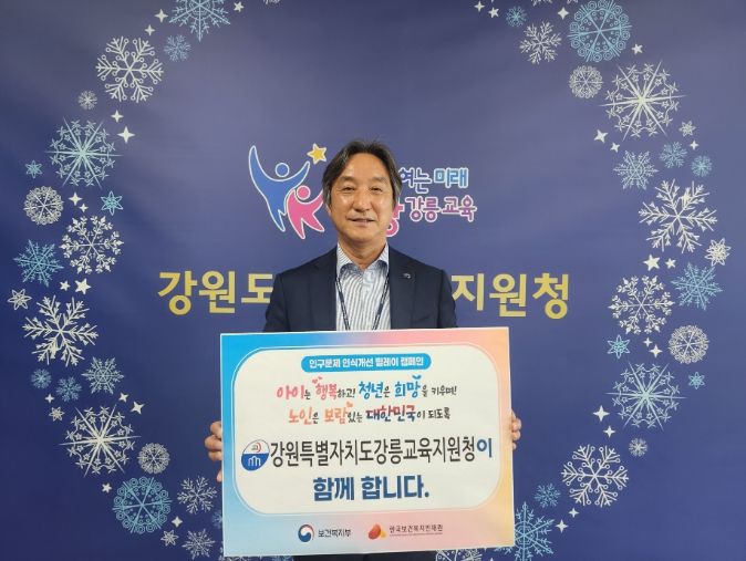 (아름다운교육신문) 강릉교육지원청은 김홍규 강릉시장의 지목을 받아 보건복지부와 한국보건복지인재원이 공동 주관하는 ‘인구문제 인식개선 릴레이 캠페인’에 참여했다.