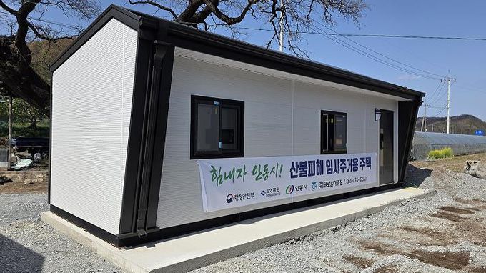 이번 산불로 1,637여 채의 주택이 전소 혹은 반소 등의 피해를 입은 것으로 파악되며, 선진이동주택 지원을 신청한 물량은 956동이다.