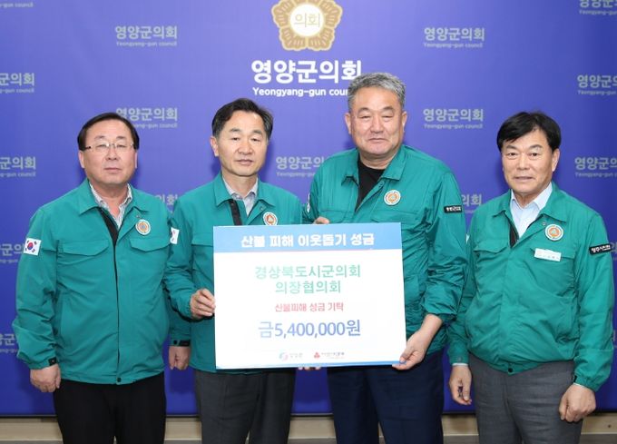 (아름다운교육신문) 영양군의회는 21일, 대형 산불로 큰 피해를 입은 군민들을 위로하고자 경북시군의회의장협의회(회장 이동협)에서 성금 540만원을 전달했다고 밝혔다.