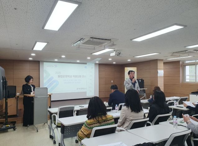 연수 주요 내용은 ▲통합운영학교 운영사례 공유 ▲협력적 조직문화 조성 방안 ▲현장 지원을 위한 네트워크 구성 등이다.