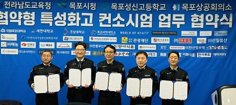 이와 관련, 전남교육청과 목포성신고, 목포시청, 목포상공회의소는 4월 21일 목포성신고에서 컨소시엄 업무협약을 체결하고 ‘남도미식 특화 인재 양성’을 위한 본격적인 행보를 시작했다.