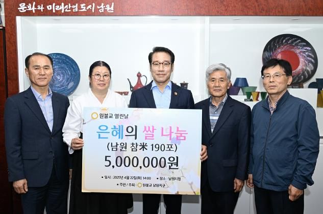 최경식 남원시장은 “원불교 대각개교절을 경축드리며 나눔을 실천하는 남원 관내 교당 교도님들에게 진심으로 감사를 드린다. 이웃을 위한 따뜻한 나눔 문화 실천이 지역주민들에게 큰 위로가 될 것이다”라고 밝혔다.