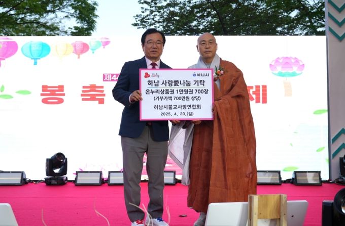 (아름다운교육신문) 지난 20일 하남시불교사암연합회는 하남시민 화합의 공연 문화 제등축재에서 하남시에 온누리상품권 700만원을 기탁했다.
