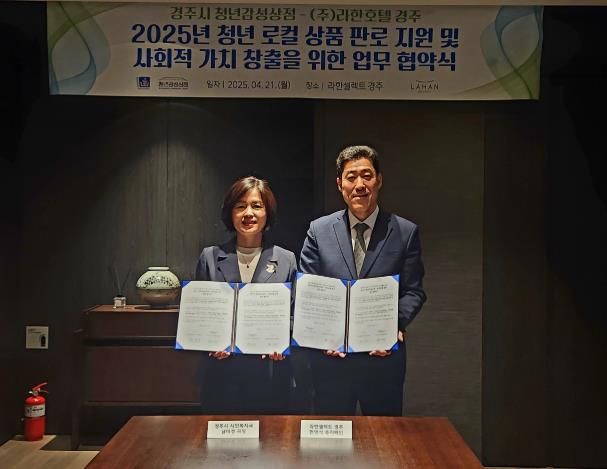 (아름다운교육신문) 경주시는 지난 21일 라한호텔 경주에서 ‘청년감성상점–라한호텔 경주 상품 입점 협약식’을 개최하고, 지역 청년 예술가들의 창작 활동을 지원하고 판로를 넓히기 위한 협력을 이어가기로 했다.