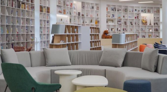특히 세계지도 및 기차형 서가, 기차형 열람 좌석 등 여행을 주제로 꾸며진 공간이 특징이다.