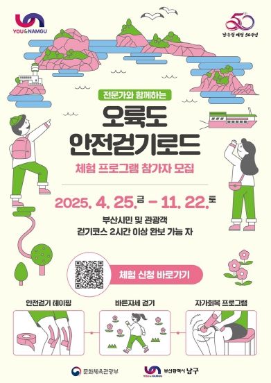 오은택 남구청장은 “오륙도 안전걷기로드는 남구의 해안 자원을 활용한 건강하고 차별화된 걷기 콘텐츠”라며 “앞으로도 지역의 특색을 살린 웰니스 도보관광 프로그램을 통해 남구만의 매력을 널리 알리겠다”고 전했다.