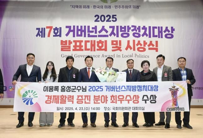 홍성군에 따르면 지난 23일 국회의원회관에서, 사단법인 거버넌스센터가 주최하고 대통령직속 국가균형발전위원회, 대한민국 시장군수협의회가 후원하는 제7회 거버넌스정치대상 시상식에서 이용록 홍성군수가 ‘거버넌스 지방정치대상’을 수상했다.