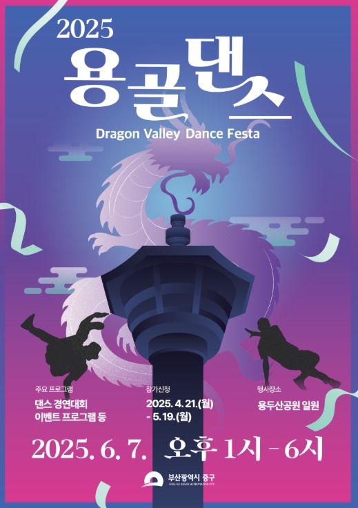 (아름다운교육신문) 부산 중구 오는 6월 7일 오후 1시부터 비보잉의 옛 성지인 용두산공원에서 ‘2025 용골댄스 페스타와 용두산 치어리딩 챔피언십’를 개최한다고 밝혔다.