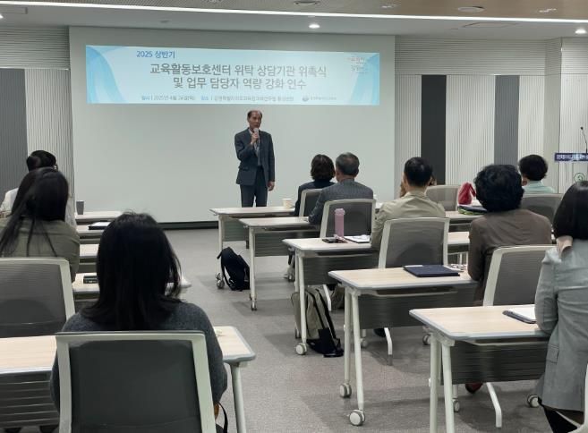 (아름다운교육신문) 강원특별자치도교육청은 4월 24일 14시에 교육연수원 횡성분원에서 교육활동 보호센터 위탁 상담 기관 기관장과 상담사를 대상으로 ‘2025년 교육활동 보호센터 위탁 상담 기관 위촉식 및 상반기 역량 강화 연수’를 실시했다.