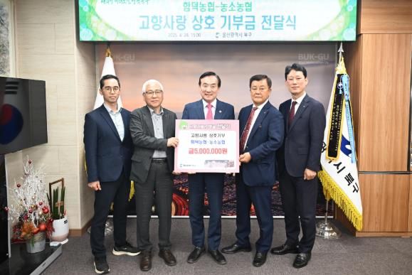 농소농협과 함덕농협 임직원들은 24일 북구청을 찾아 고향사랑기부금 각 500만원을 상호 지역에 교차 기부했다.
