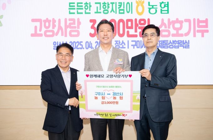 이날 전달된 기부금은 구미와 경산 지역 농협 임직원 300여 명이 자발적으로 참여해 마련된 것으로, 두 지역 간의 상생과 연대의 의미를 더했다.
