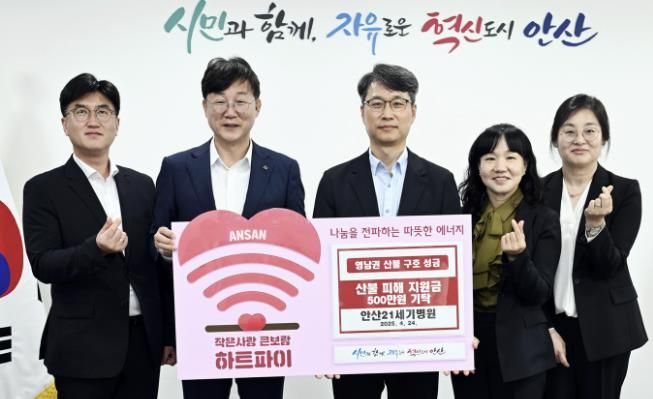 이민근 안산시장은 “국가적 재난 복구에 동참해 주신 안산21세기병원에 진심으로 감사드린다”며 “산불 피해를 입은 이재민에게 보내주신 성금을 소중히 전달하겠다”고 화답했다.