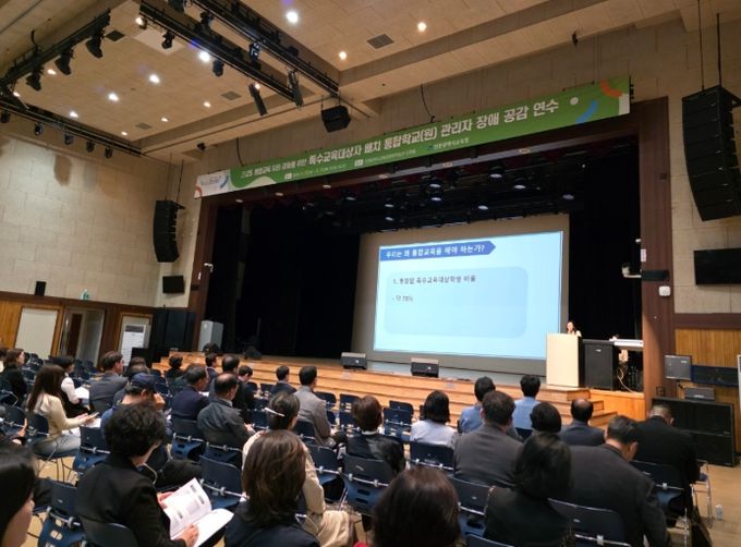 ‘통합교육, 모두가 win-win하는 교육’을 주제로 한 경인교육대학교 김수연 교수의 강연에서는 인천시교육청이 전국 최초로 개발한 학교 장애인식 지수와 연계 프로그램이 소개됐다.