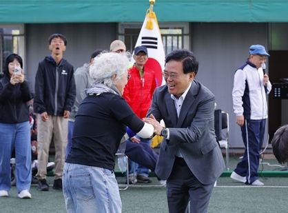 진 구청장은 26일 방화대교 남단 게이트볼장에서 열린 ‘샬롬의 집(장애인거주시설) 운동회’를 찾았다.