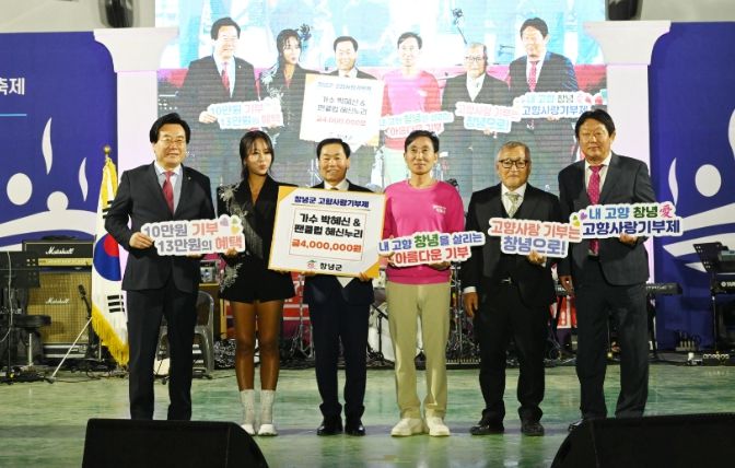 (아름다운교육신문) 창녕군은 지난 26일 제30회 부곡온천축제에서 가수 박혜신 씨와 팬클럽 ‘혜신누리’가 고향사랑기부금 400만 원을 기탁했다고 밝혔다.