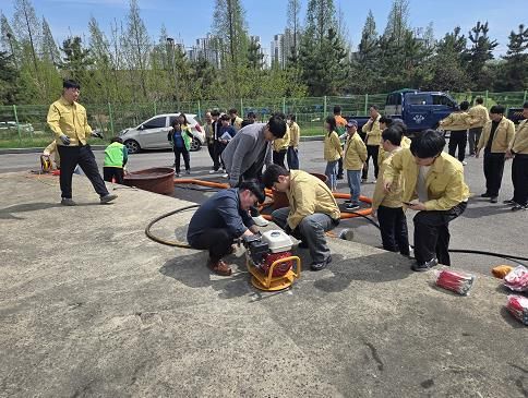 훈련은 집중호우와 같은 여름철 재난 상황에 대비해 민간과 협력해 대응능력 강화, 양수기의 운영 및 유지 보수에 대한 이해를 높이기 위해 마련됐다.