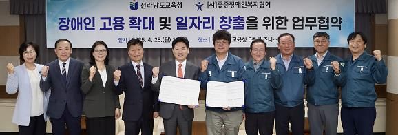 (아름다운교육신문) 전라남도교육청은 28일 청사에서 (사)중증장애인복지협회와 장애학생 고용 확대 및 일자리 창출을 위한 업무협약을 체결했다.