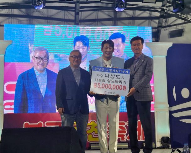 (아름다운교육신문) 창녕군은 지난 27일 부곡온천축제에서 가수 나상도 씨와 팬클럽 '상도바라기'가 창녕군에 고향사랑기부금 500만 원을 기탁했다고 밝혔다.