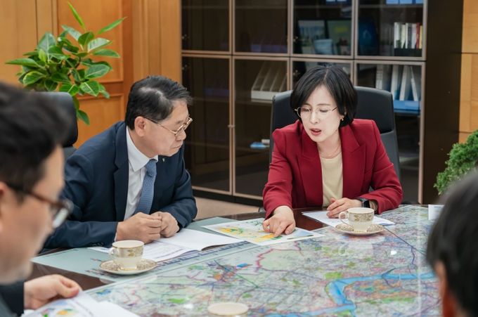 이날 이수희 구청장은 황상하 서울주택도시공사(SH) 사장을 만나 고덕비즈밸리의 교통체증과 주차장 부족으로 인한 혼란 등을 대비한 선제적 조치로 고덕강일1지구 내 부지 확보를 건의했다.