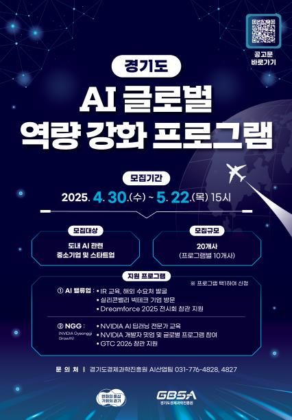 프로그램은 ‘AI 밸류업’과 ‘NGG(NVIDIA Gyeonggi Growth)’ 총 두 개로 구성되며, 주제마다 10개 기업을 선정해 맞춤형 글로벌 진출 기회를 제공한다.