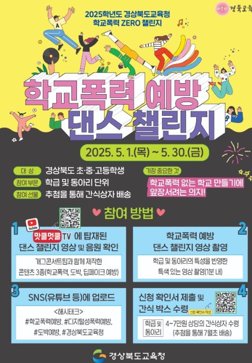 (아름다운교육신문) 경북교육청은 5월 한 달간 도내 초・중・고등학생들을 대상으로 ‘2025학년도 학교폭력 ZERO 챌린지’를 본격 추진한다고 30일 밝혔다.