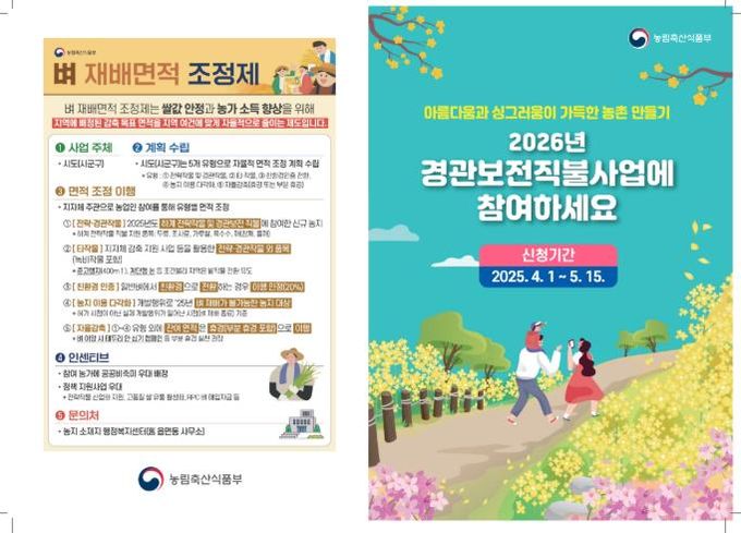 박동식 시장은 “경관보전직불제 사업으로 농촌 경관을 아름답게 하고, 또 이를 지역축제·농촌관광 도농교류 프로그램 등과 연계해 농업인 소득 증대에 도움이 되기를 바란다”고 밝혔다.