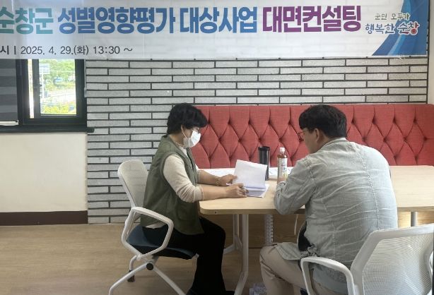 (아름다운교육신문) 순창군은 지난 29일 청년문화센터에서 '2025년 성별영향평가 대상사업'을 대상으로 담당자별 대면 컨설팅을 실시했다.