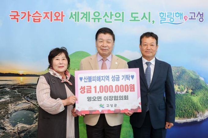 (아름다운교육신문) 고성군 영오면 이장협의회는 4월 29일 고성군청 3층 집무실에서 영남지역 산불 피해를 지원하기 위해 100만 원의 성금을 기탁했다.