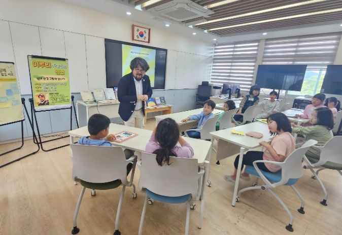 (아름다운교육신문) 제주도교육청 수산초등학교는 25일 1~2학년 학생들을 대상으로 문해력 신장 활동으로 이루리 작가와의 만남을 가졌다.