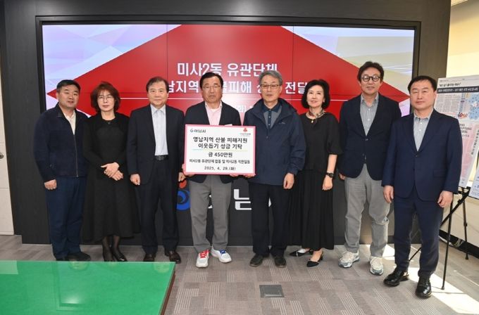이번에 마련한 성금은 미사2동 7개 유관단체(통장단, 주민자치회, 지역사회보장협의체, 체육회, 바르게살기운동 협의회, 방위협의회, 새마을부녀회) 및 미사2동 직원들이 영남지역 산불 피해 복구를 위해 써달라며 자발적으로 모금하여 총 450만원이 모인 것이다.