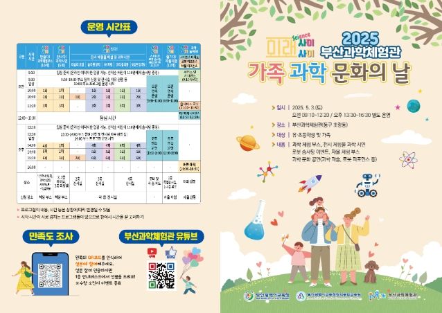 (아름다운교육신문) 부산광역시교육청창의융합교육원은 오는 3일 오전 9시 10분부터 오후 4시 30분까지 부산과학체험관에서 유아 및 초등학생과 가족 1,200여 명을 대상으로 ‘가족 과학 문화의 날’ 행사를 개최한다.