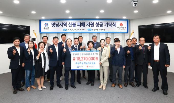 (아름다운교육신문) 대전 유성구는 관내 직능단체가 영남 지역에 발생한 대형 산불 피해 복구를 위해 자발적으로 모금한 성금 1,827만 원을 기탁했다고 1일 밝혔다.