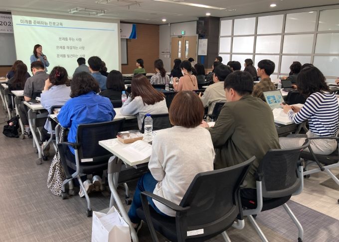 이날 연수에서는 단국대학교 미래ICT융합창업학과 겸임교수인 유현경 강사(렛츠챌린지 대표)의 진행으로 초등진로교사가 꼭 알아야 할 ‘미래교육에 새로운 가치를 창출하는 창업가정신교육’을 주제로 연수했다.