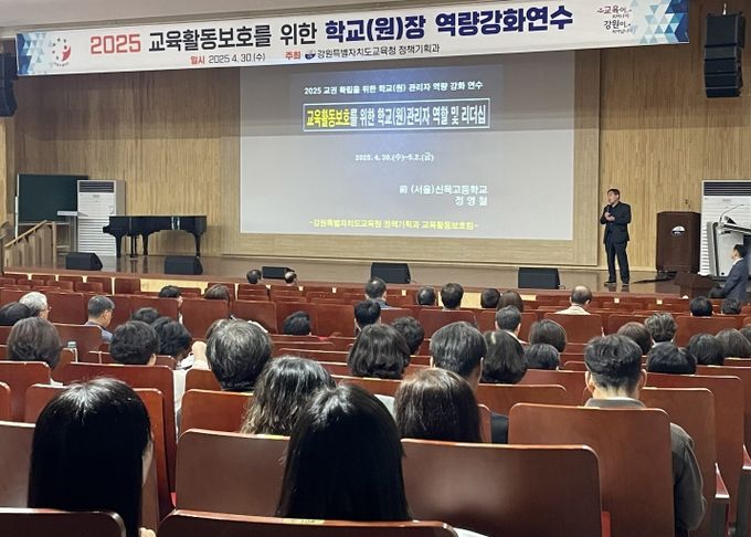 (아름다운교육신문) 강원특별자치도교육청은 4월 30일부터 5월 2일까지 3일간 강원특별자치도교육청교육연수원, 강원특별자치도유아교육원, 강원특별자치도교육청에서 도내 초·중·고·특수학교 교장 및 유치원 원장을 대상으로 ‘2025 교육활동보호를 위한 학교(원)장 역량강화 연수’를 실시했다.