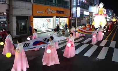 마지막 순서인 제등행렬에서는 연등의 따뜻한 불빛이 강진 밤하늘을 아름답게 수놓았다.