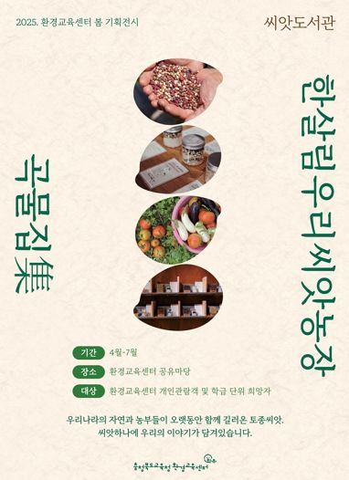 (아름다운교육신문) 충청북도교육청 환경교육센터와우는 2025년 봄 기획전시 '씨앗도서관: 곡물집×우리씨앗농장'을 운영한다.