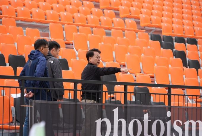 육동한 춘천시장은 3일 강원FC와 수원FC의 K리그1 11라운드 경기를 앞두고 송암스포츠타운 종합경기장을 방문, 새로 설치된 가변좌석을 비롯한 경기장 전반의 주요 시설을 점검했다.