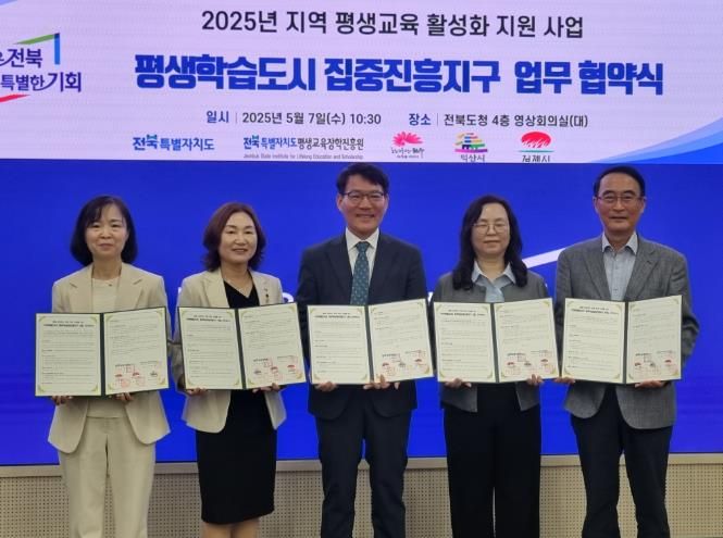 이번 협약식은 교육부 주관 '2025년 지역평생교육활성화지원사업'의 일환인 '평생학습 집중진흥지구 사업'에 공모 선정되어 국비를 포함한 총사업비 1억 5천만원을 확보하고. 김제시, 전주시, 익산시가 지정되어 지역 특성에 맞는 평생학습 체계를 구축하고 시민들의 평생학습 참여 기회를 대폭 확대할 수 있게 됐다.