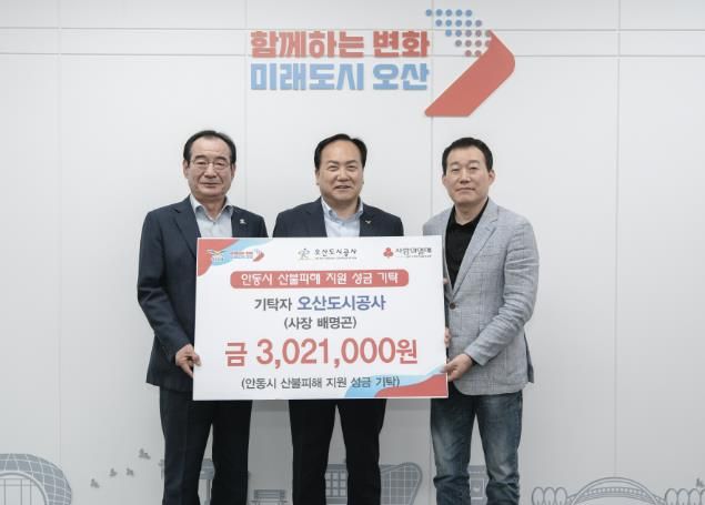 (아름다운교육신문) 오산도시공사는 지난 2일, 자매도시인 경북 안동시의 산불피해 복구와 이재민 지원을 위한 성금 302만원을 기탁했다고 밝혔다.