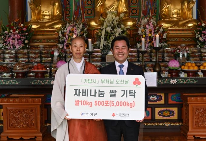(아름다운교육신문) 대한불교조계종 가탑사(주지 대현스님)는 지난 5일 부처님 오신 날을 맞이하여 부여군 저소득층에게 전달해 달라며 쌀 10kg 500포(5,000kg)를 부여군에 기탁했다.