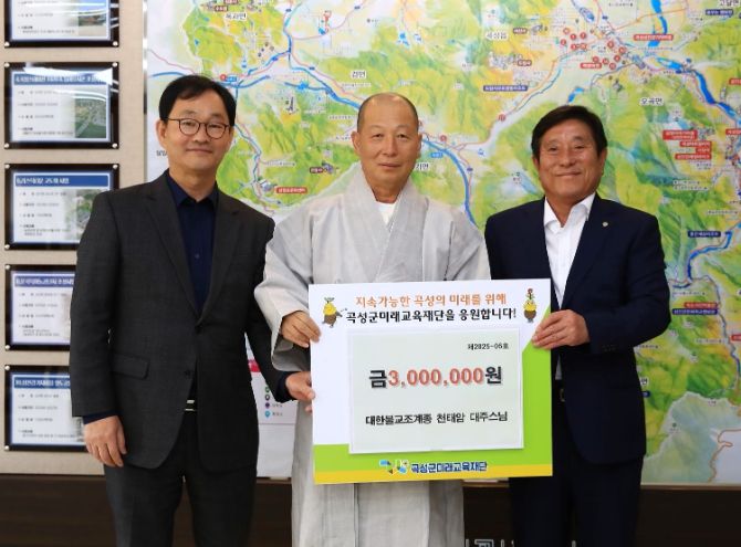 (아름다운교육신문) 전남 곡성군은 대한불교조계종 천태암 주지 대주스님이 재단법인 곡성군미래교육재단에 곡성형 인재양성을 위해 장학금 3백만 원을 기탁했다고 지난 2일 밝혔다.