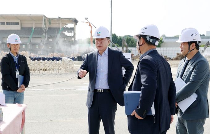 이날 우범기 전주시장은 마지막 구조물 철거에 돌입한 전주종합경기장 철거공사 현장을 찾아 추진 현황을 살펴보고, 시민과의 약속 이행을 위한 속도감 있는 업무 추진을 주문했다.